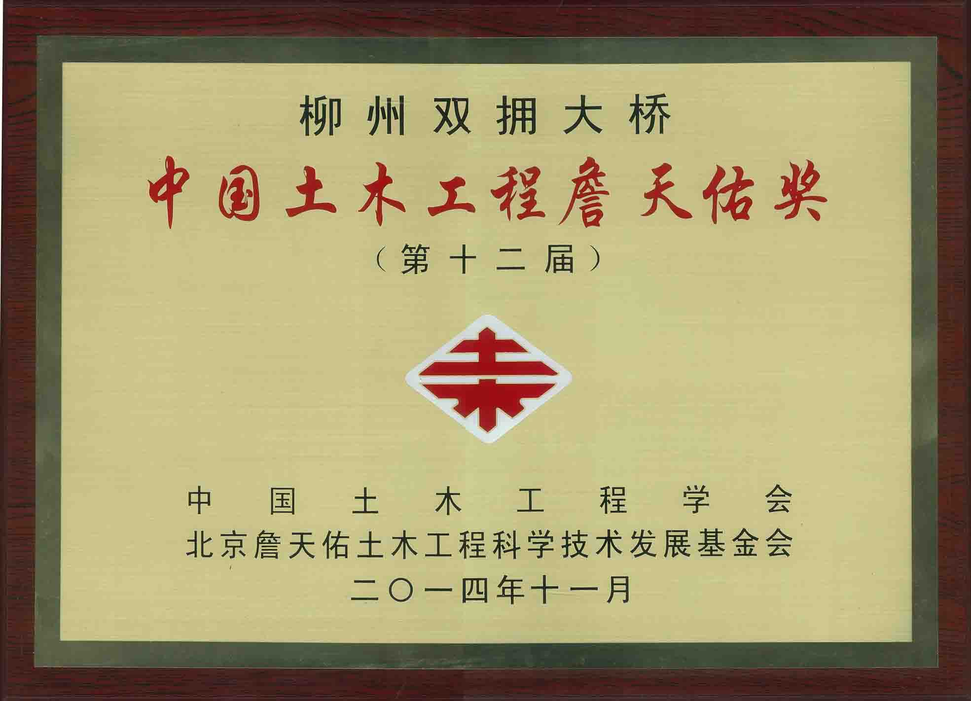 廣西柳州雙擁大橋榮獲中國土木工程詹天佑獎