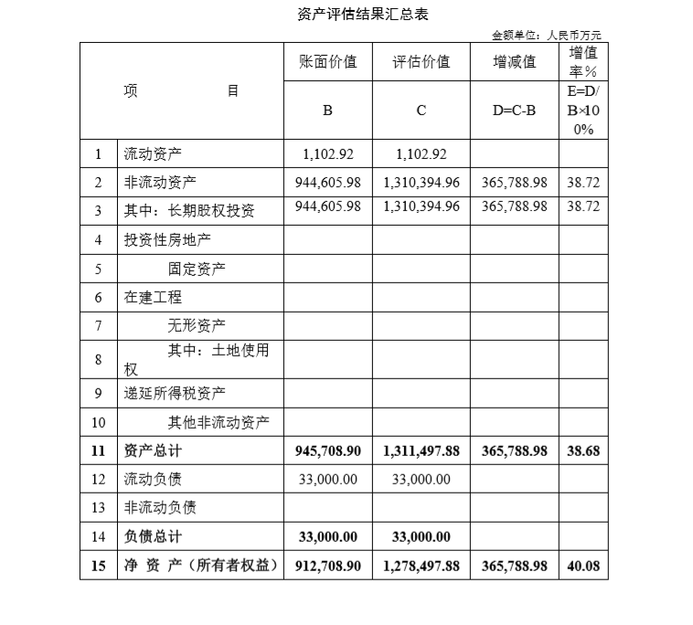 2018年12月5日,經中鐵交通集團第三屆第十九次董事會審議通過引入戰略投資者的議案,并就中鐵高速全部股東權益組織了資產評估。根據國資委《關于建立中央企業資產評估項目公示制度有關事項的通知》(國資發產權〔2016〕41號),以及股份公司《中國中鐵股份有限公司資產評估公示暫行辦法》(中鐵股份財務〔2016〕153號)的要求,現將資產評估結果進行公示。