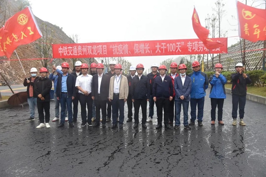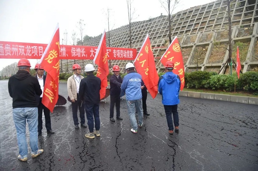 為認真落實股份公司、集團公司關于“抗疫情、保增長,大干100天”專項勞動競賽動員會精神,5月25日,貴州雙龍項目在環物流外環道路K8+500施工現場,組織展開雙龍項目“抗疫情、保增長,大干100天”專項勞動競賽啟動儀式。雙龍項目領導班子成員、各部門員工,各參建項目代表共計90余人參加了此次活動。