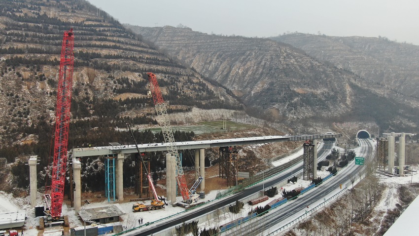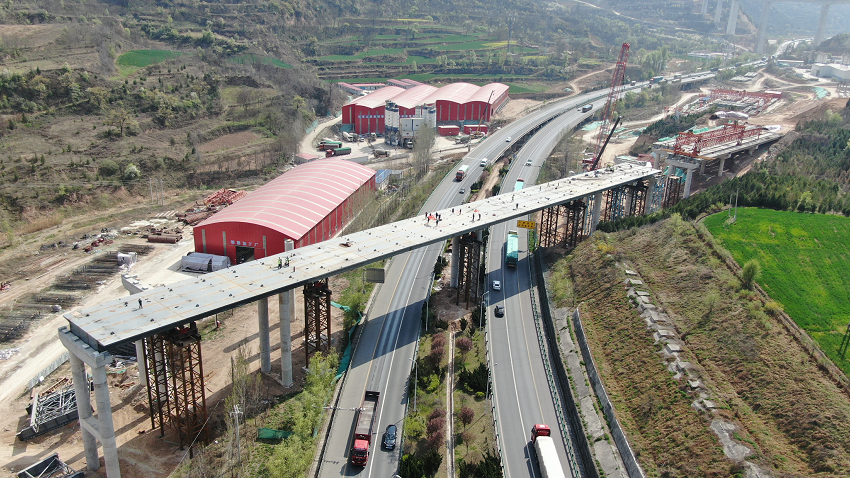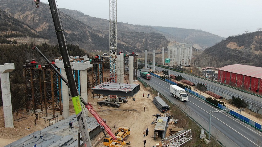 ▲李家坡鋼箱梁大橋架設(shè)順利貫通