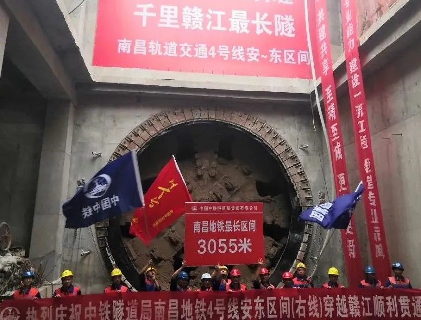 6月10日,南昌地鐵4號線02標東新站至安豐站區間(右線)盾構機順利穿越贛江并在安豐站接收,標志著贛江江底最長隧道順利貫通。
