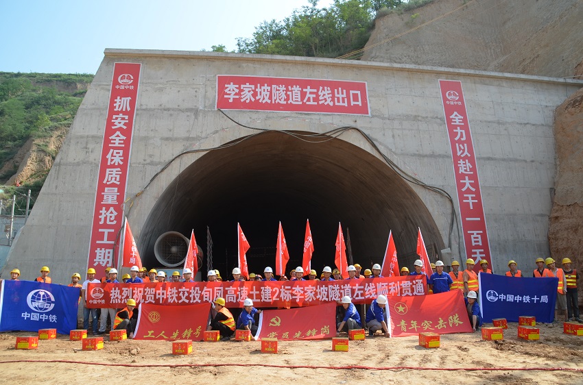 在“抗疫情、保增長(zhǎng),大干100天”專項(xiàng)勞動(dòng)競(jìng)賽如火如荼開展之際,7月8日,旬鳳高速公路項(xiàng)目又一個(gè)施工隧道——土建2標(biāo)段李家坡隧道左線順利貫通。