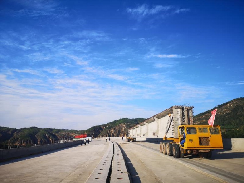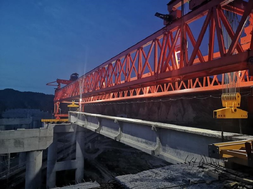 7月10日,清子項目界石堡特大橋上跨鐵路工程成功架設首片50mT梁。
