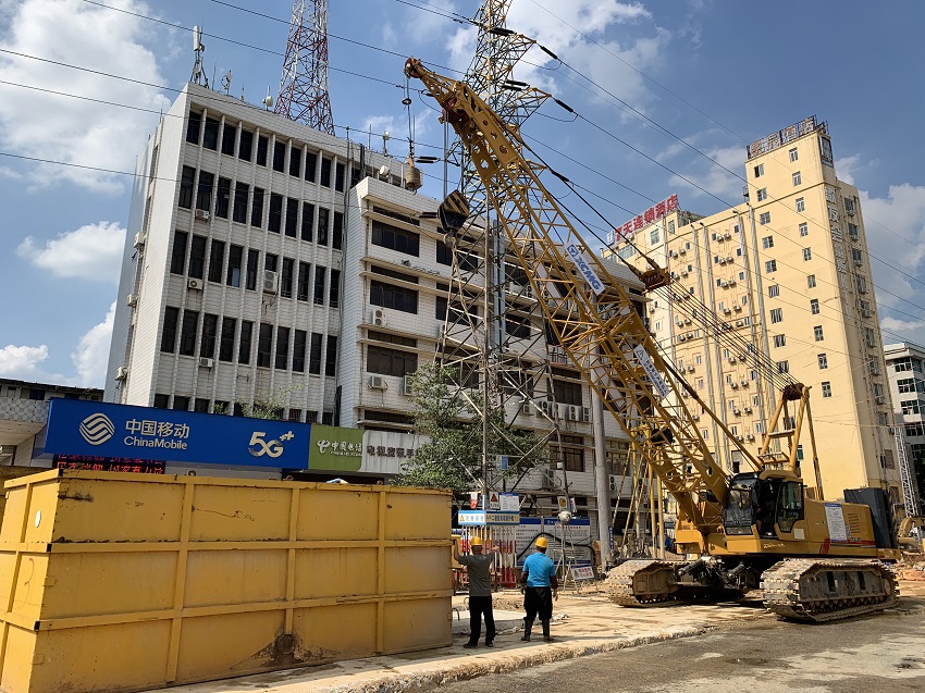 廣西大學(xué)站2號(hào)風(fēng)亭及M號(hào)出入口地連墻施工地下管線密集且位于城市主干道,臨邊建筑物聚集,周邊高壓電密集,施工場(chǎng)地受限,地質(zhì)條件比較復(fù)雜,是施工過(guò)程中面臨的主要難題。指揮部與項(xiàng)目部超前策劃,尤其是新舊建筑物覆蓋及110kv高壓架空下地連墻施工,多次與設(shè)計(jì)單位溝通,同時(shí),邀請(qǐng)專(zhuān)家及各參建單位進(jìn)行探討論證,細(xì)化施工環(huán)節(jié),優(yōu)化施工工藝并組織專(zhuān)業(yè)人員、設(shè)備、材料,選用合理的施工方案和機(jī)械設(shè)備,確保作業(yè)安全。截至目前,地連墻完成施工,重大風(fēng)險(xiǎn)源臨邊建筑7天酒店大樓最大沉降為6mm(設(shè)計(jì)值20mm),全過(guò)程未發(fā)生監(jiān)測(cè)預(yù)警,圓滿(mǎn)實(shí)現(xiàn)安全目標(biāo)。