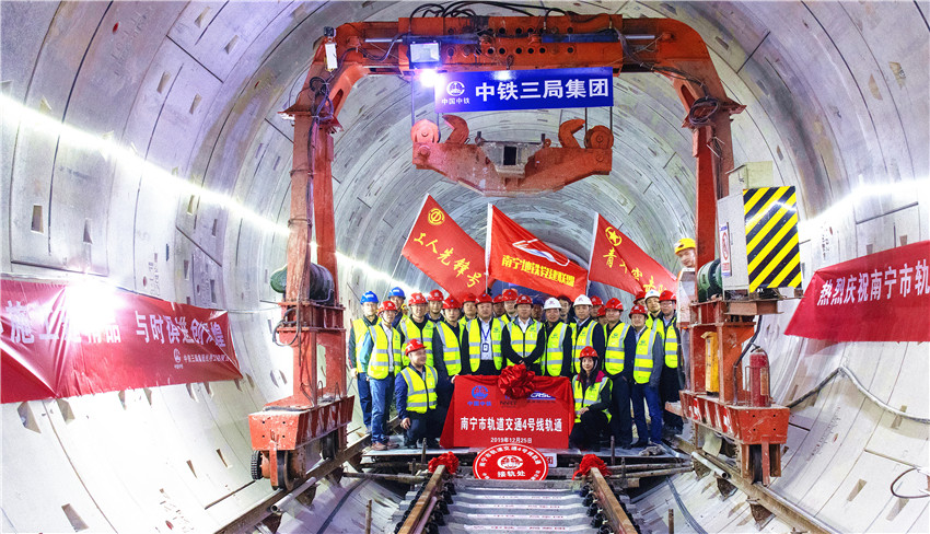 中國中鐵作為南寧地鐵4號線的主要施工總承包方,承建了體育中心東站、良慶大橋南站、良慶圩站、楞塘村站、五象火車站、清平坡站、龍崗站7個車站的土建工程及全線的機電裝修工程。中國中鐵各參建單位在4年多的每一個日夜,由中鐵廣西軌道交通指揮部牽頭強化統(tǒng)籌,精心謀劃,合力攻堅,特別是在新冠肺炎疫情爆發(fā)后,面臨土建工程交付滯后,指揮部在做好疫情防控的同時,通過定人員、定責任、定實效、定措施,進一步強化施工管理,實行包保責任制,掃清了一切障礙,提前完成軌通、電通、接觸網(wǎng)熱滑等重大節(jié)點。