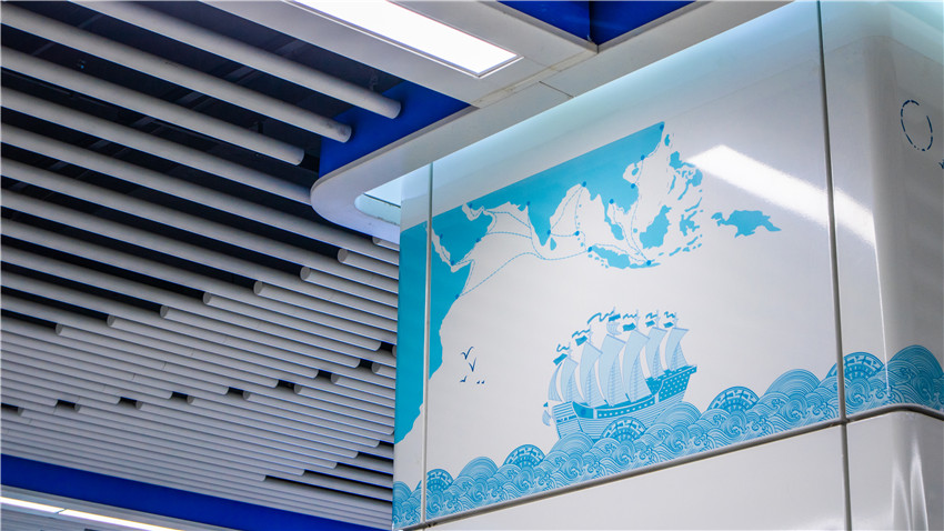 受此啟發(fā),貫穿中國(廣西)自由貿(mào)易試驗區(qū)——五象新區(qū)的南寧地鐵4號線,積極落實“絲路新篇”主題,中國中鐵嚴格按照設計理念規(guī)范施工,充分展現(xiàn)了海上絲綢之路的特色元素、體現(xiàn)了南寧“一帶一路”門戶的商貿(mào)文化特色、突出了“現(xiàn)代、簡潔、時尚”的設計風格。