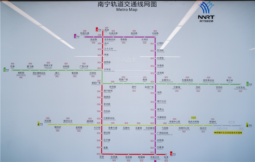 南寧地鐵4號線是南寧軌道交通線網(wǎng)中東西向的骨干線,與已開通的1、2、3號線組成“井字形”軌道交通骨架,標志著南寧市軌道交通現(xiàn)已初具規(guī)模。線路西起洪運路站,經(jīng)洪歷路、那洪大道、五象大道、聯(lián)合路到達龍崗站,全長24.6km,共設19座車站,首通段開通洪運路站至楞塘村站共16座車站。