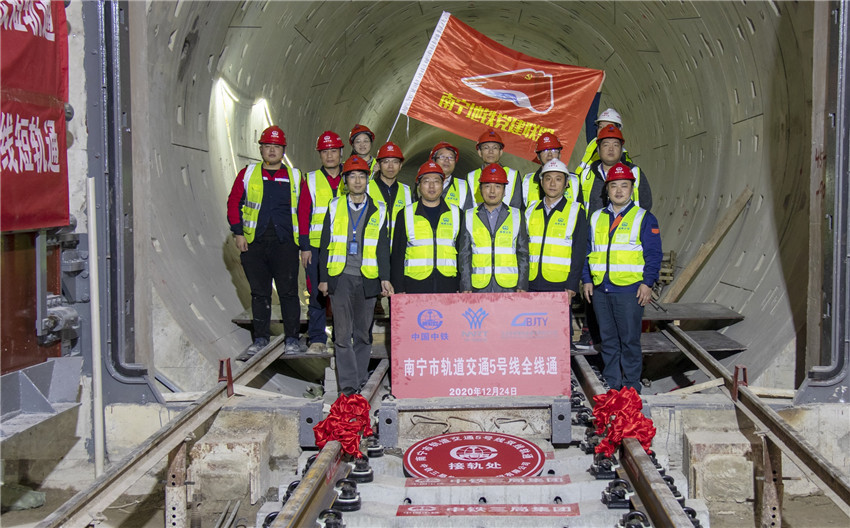 12月24日上午10時10分,最后一節鋼軌在廣西大學站右線小里程端YK22+034處順利合攏,標志著南寧地鐵5號線全線短軌通目標提前7天實現,由中國中鐵總包、中鐵交通代管、中鐵三局承建的南寧地鐵5號線02標雙線鋪軌主體已全部完成,為后續南寧地鐵5號線建設奠定了堅實基礎。