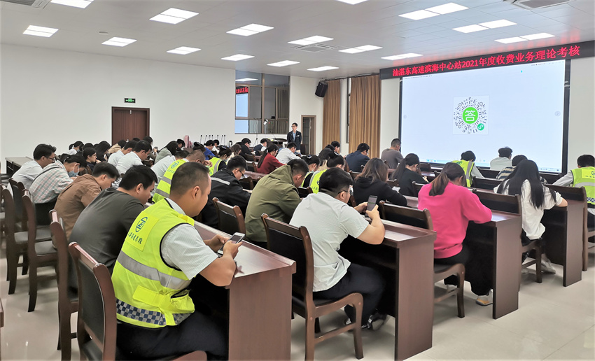 為進(jìn)一步提高收費(fèi)人員業(yè)務(wù)水平,11月上旬,汕揭項目組織開展了收費(fèi)業(yè)務(wù)理論考核,考核利用“題答答”手機(jī)小程序,題目來自廣東省收費(fèi)員業(yè)務(wù)技能競賽題庫,現(xiàn)場共101人參加考核,其中15名收費(fèi)員獲得滿分。