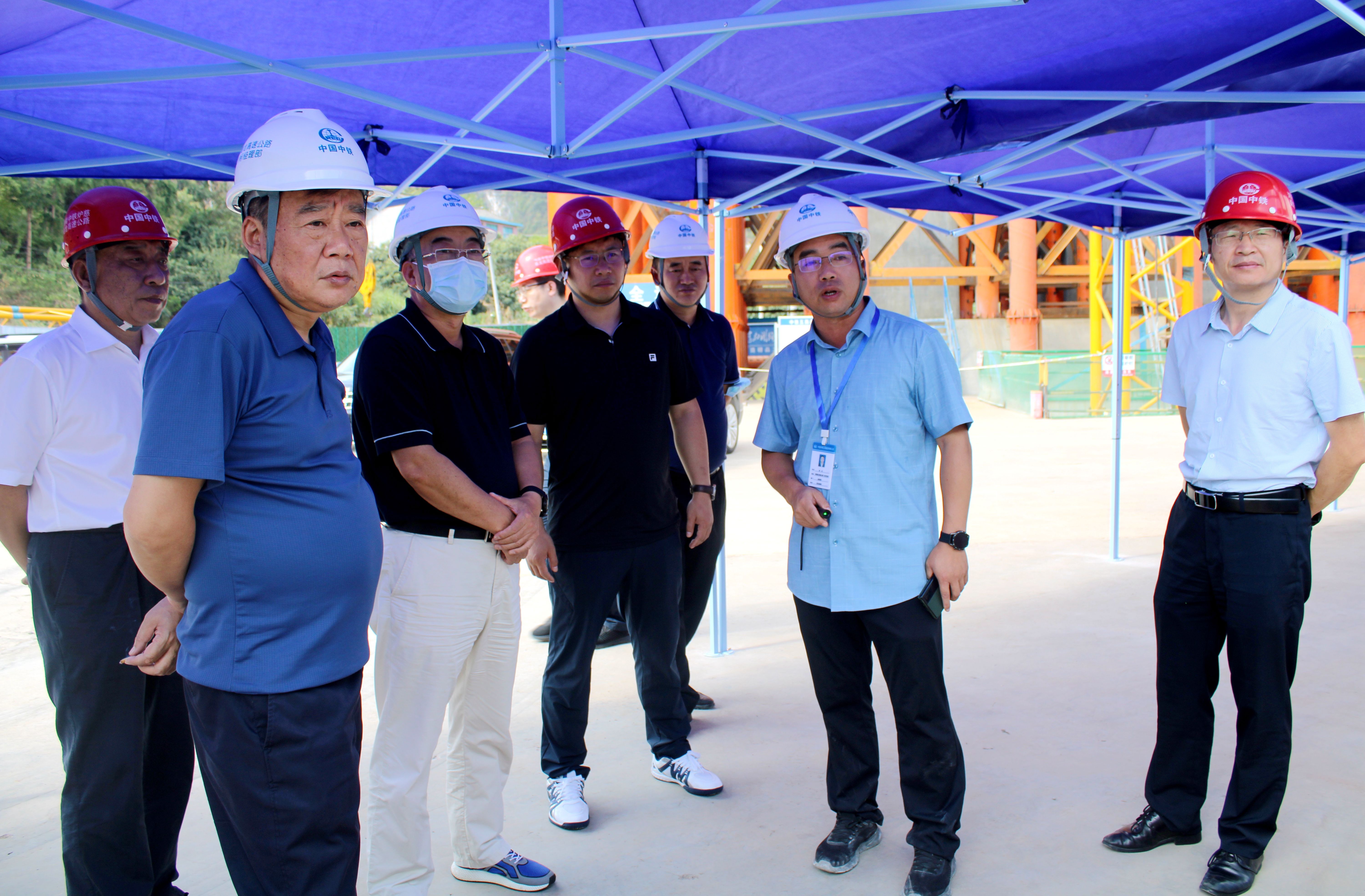 ▲調研組實地查看桑龍高速TJ1標賀龍特大橋施工現場
