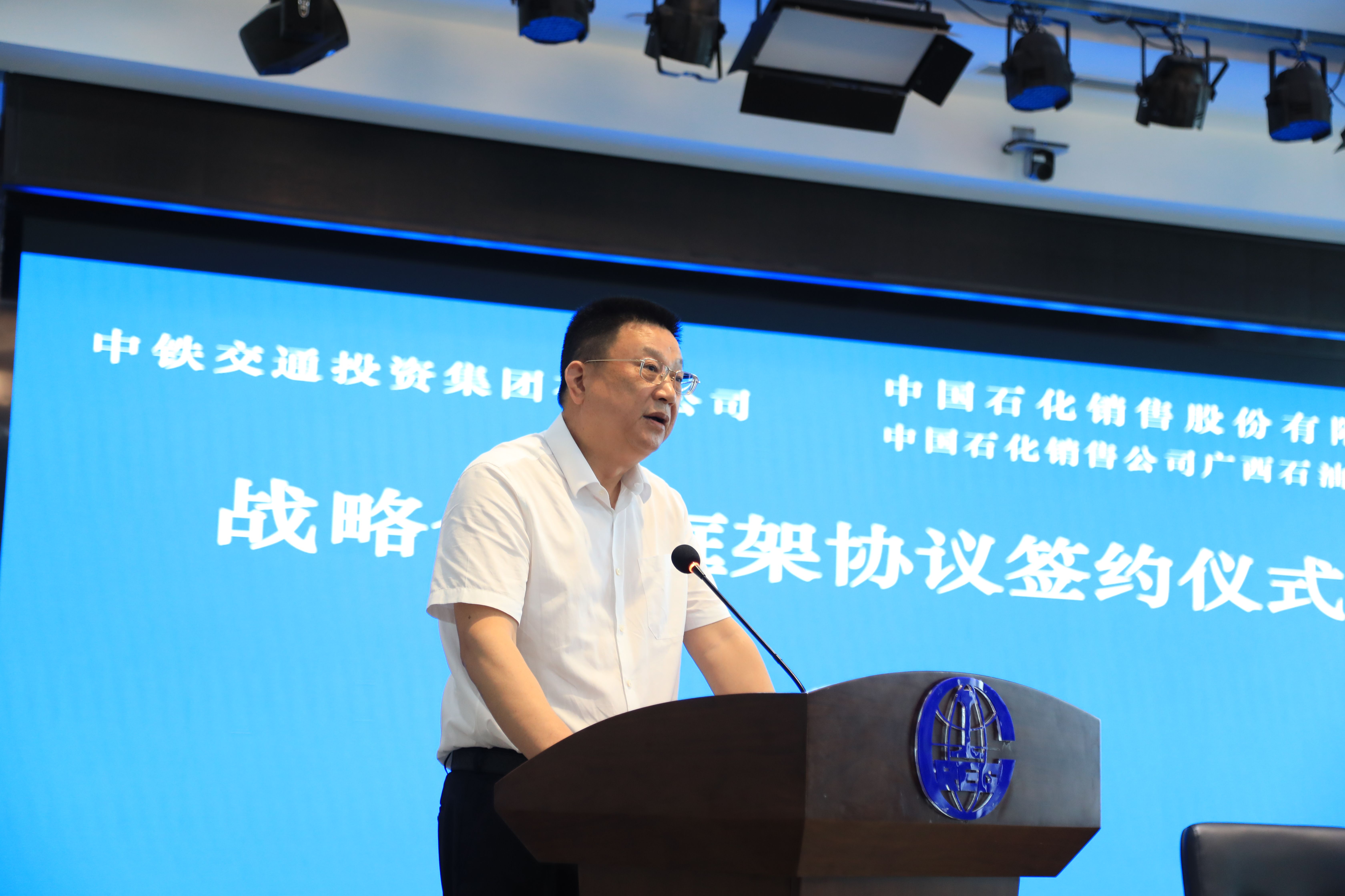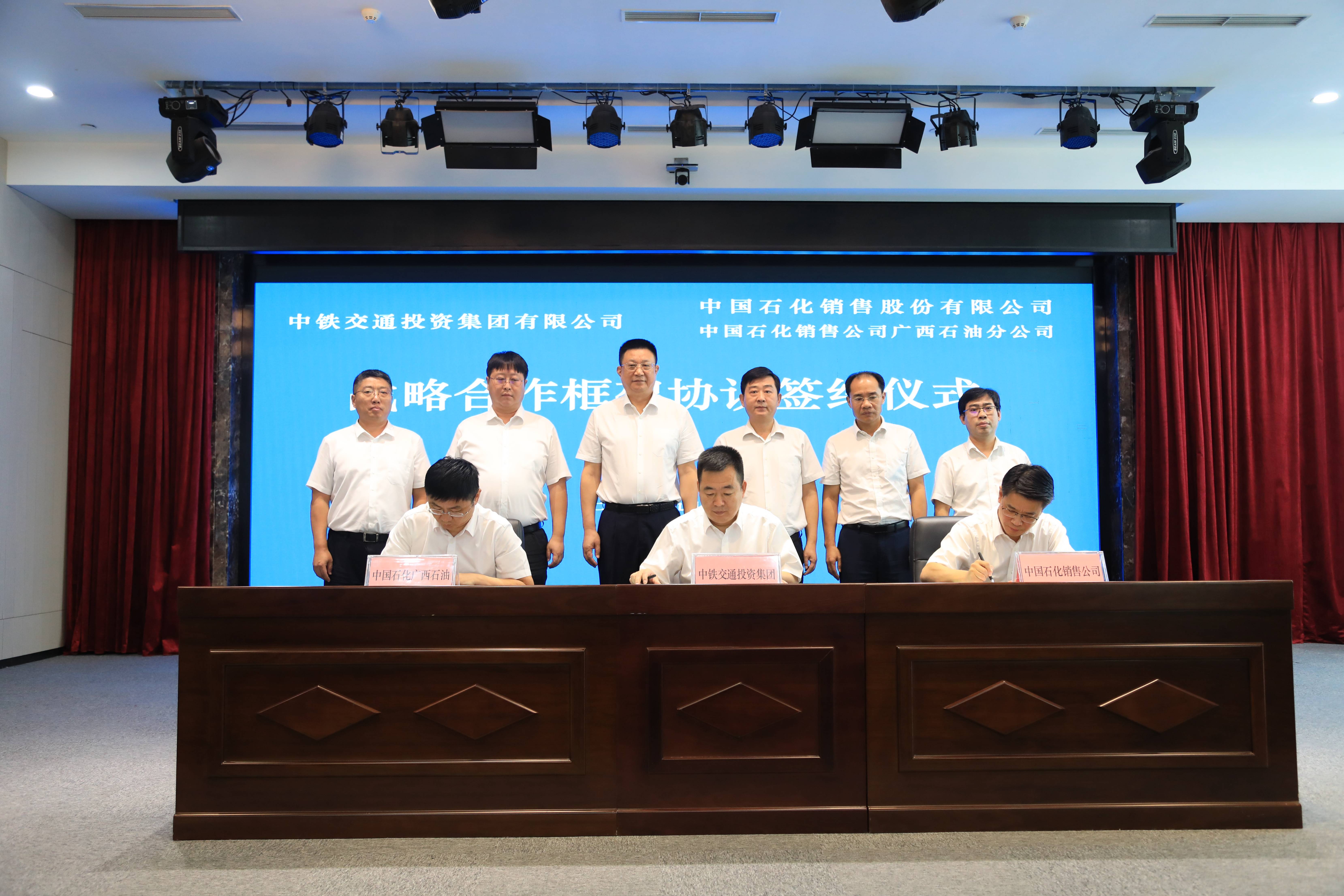 中鐵交通相關(guān)部門(mén)和單位負(fù)責(zé)同志,中國(guó)石化銷(xiāo)售公司及中國(guó)石化廣西石油相關(guān)領(lǐng)導(dǎo)及部門(mén)負(fù)責(zé)同志參加了簽約儀式。