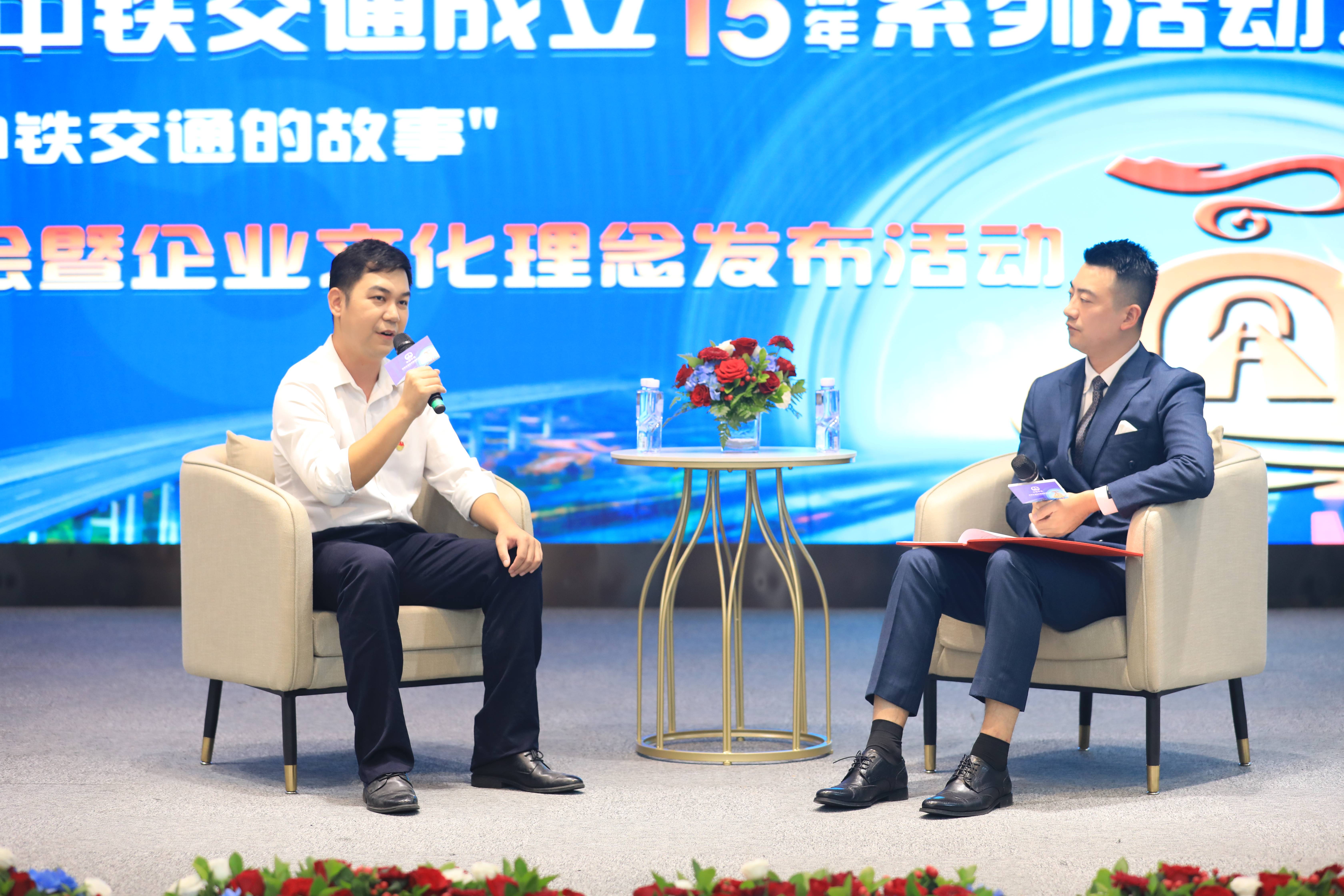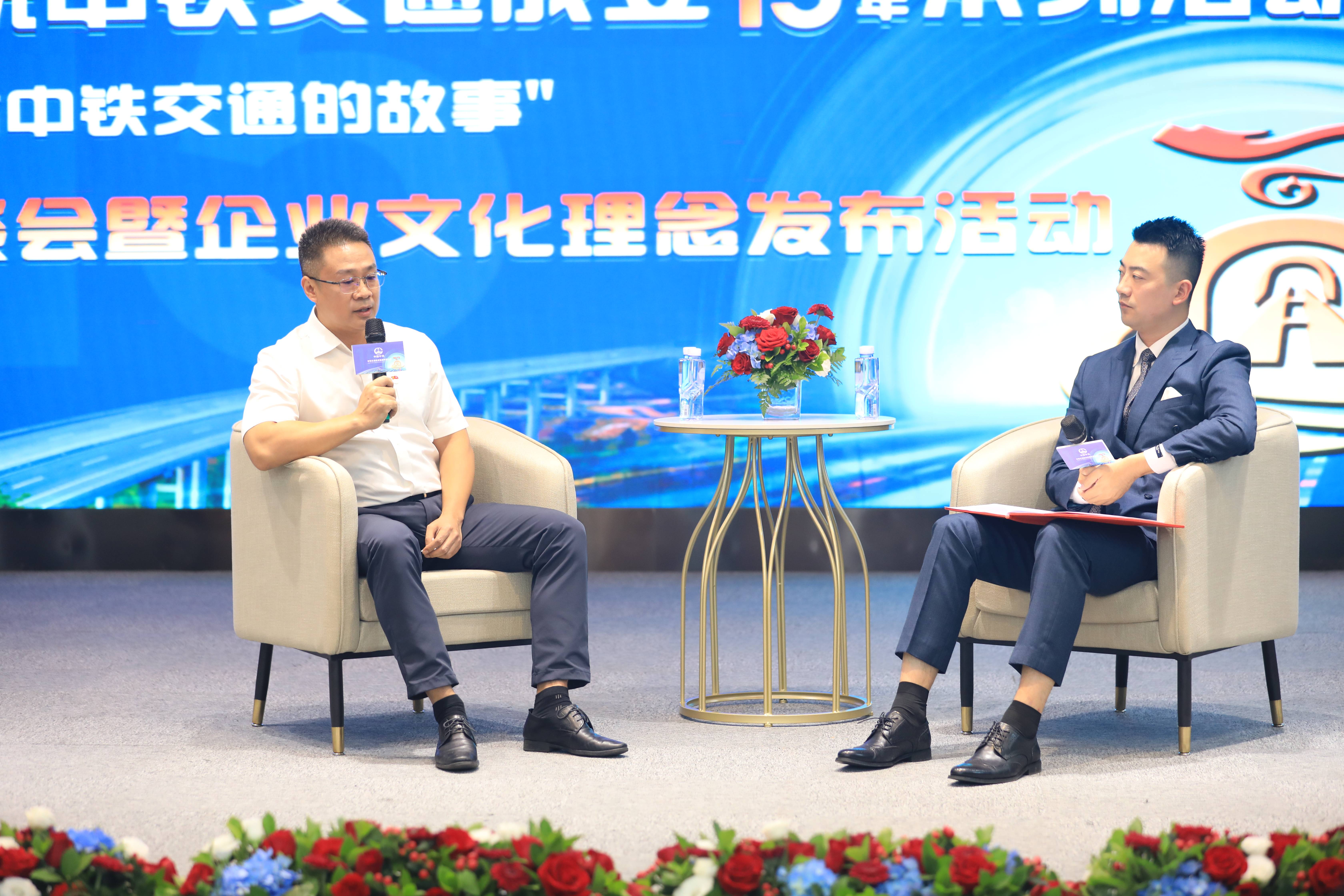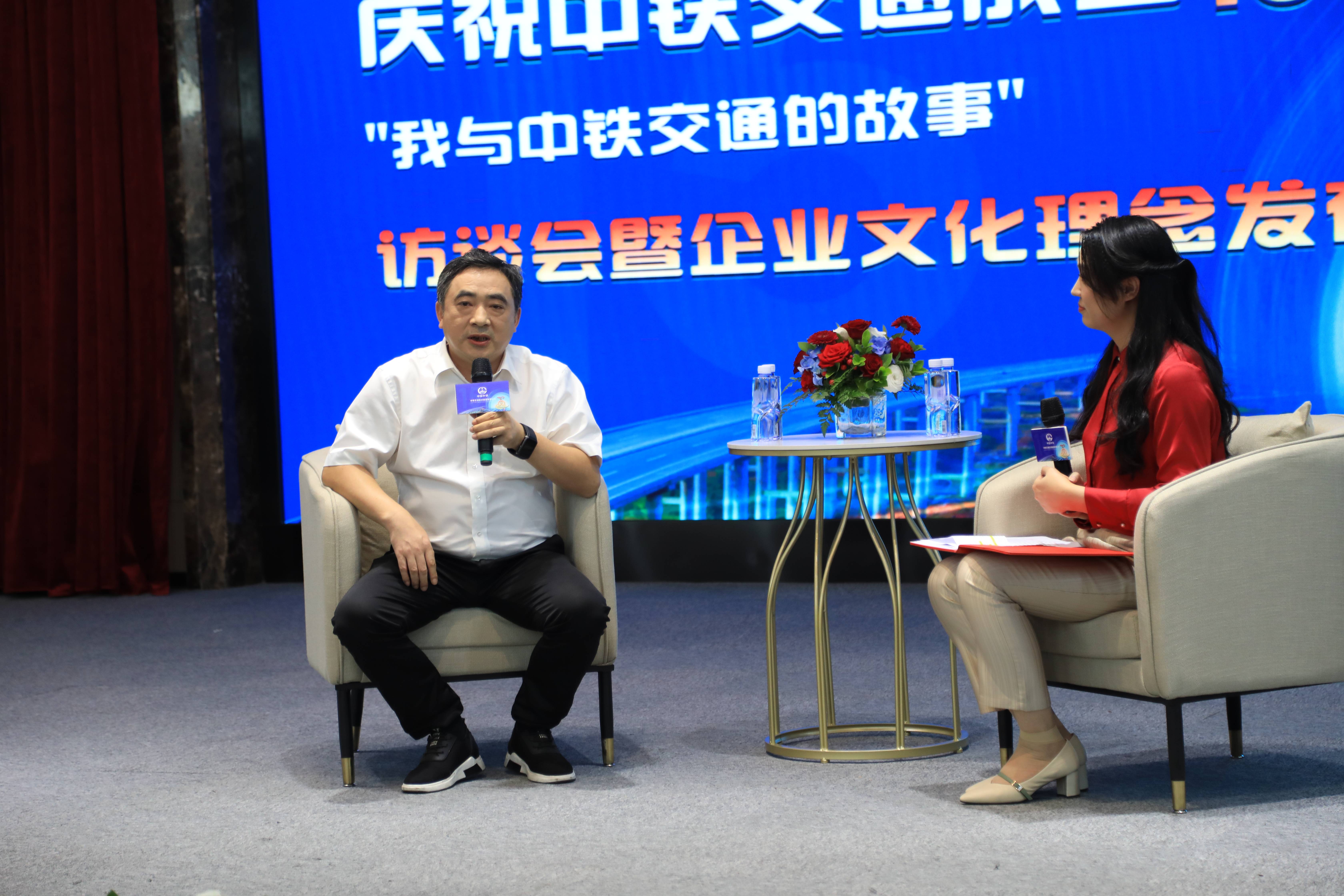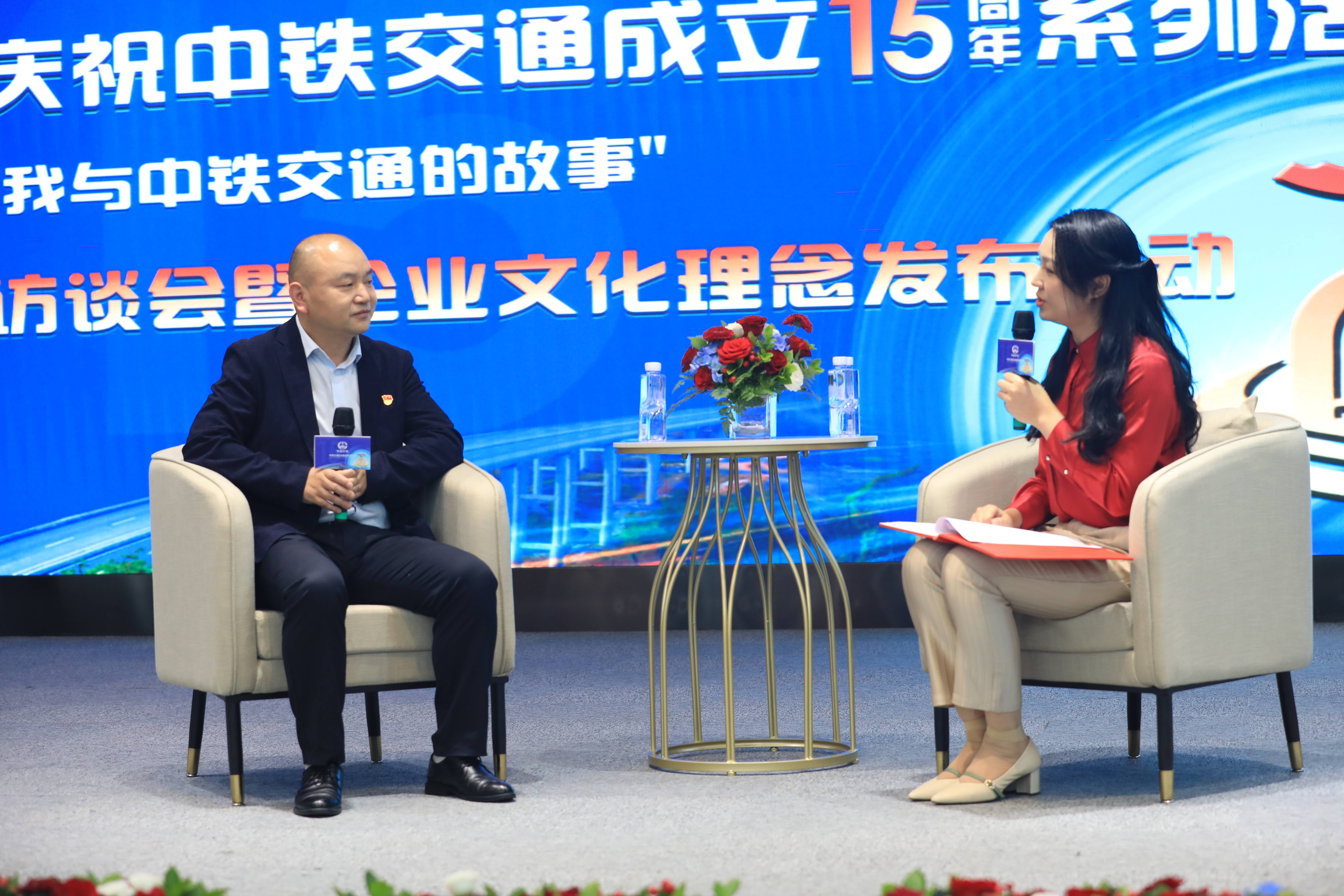 11月8日,中鐵交通成立15周年系列活動(dòng)之——“我與中鐵交通的故事”訪談會(huì)暨企業(yè)文化理念發(fā)布活動(dòng)在集團(tuán)公司機(jī)關(guān)辦公大樓成功舉辦,集團(tuán)公司黨委書記、董事長(zhǎng)譚世俊出席活動(dòng)并講話,集團(tuán)公司副總經(jīng)理、總工程師龍偉,總會(huì)計(jì)師、總法律顧問李曉鵬,紀(jì)委書記李奇峰出席活動(dòng)。